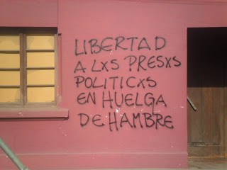 Aprovechamos el contexto de la semana de agitaciòn por la liberación de lxs presxs caso bombas, para mandarles un caluroso abrazo desde acá lejos, mucha fuerza a ellxs, sus amigxs y familia, asi como tambien a los presos politicos Mapuche que estan en su segunda huelga de hambre en menos de un año, habiendo soportado mas de 82 dias de ayuno, hoy recurren nuevamente a esta forma de presion para que se apuren sus procesos y le quiten las absurdas condenas de mas de 15 años cada una, por robo de madera y amedrentamientos a los terratenientes del wallmapu entre otras,para todos ellos y sus familiares y amigos todo el newen de la ñuke mapu.